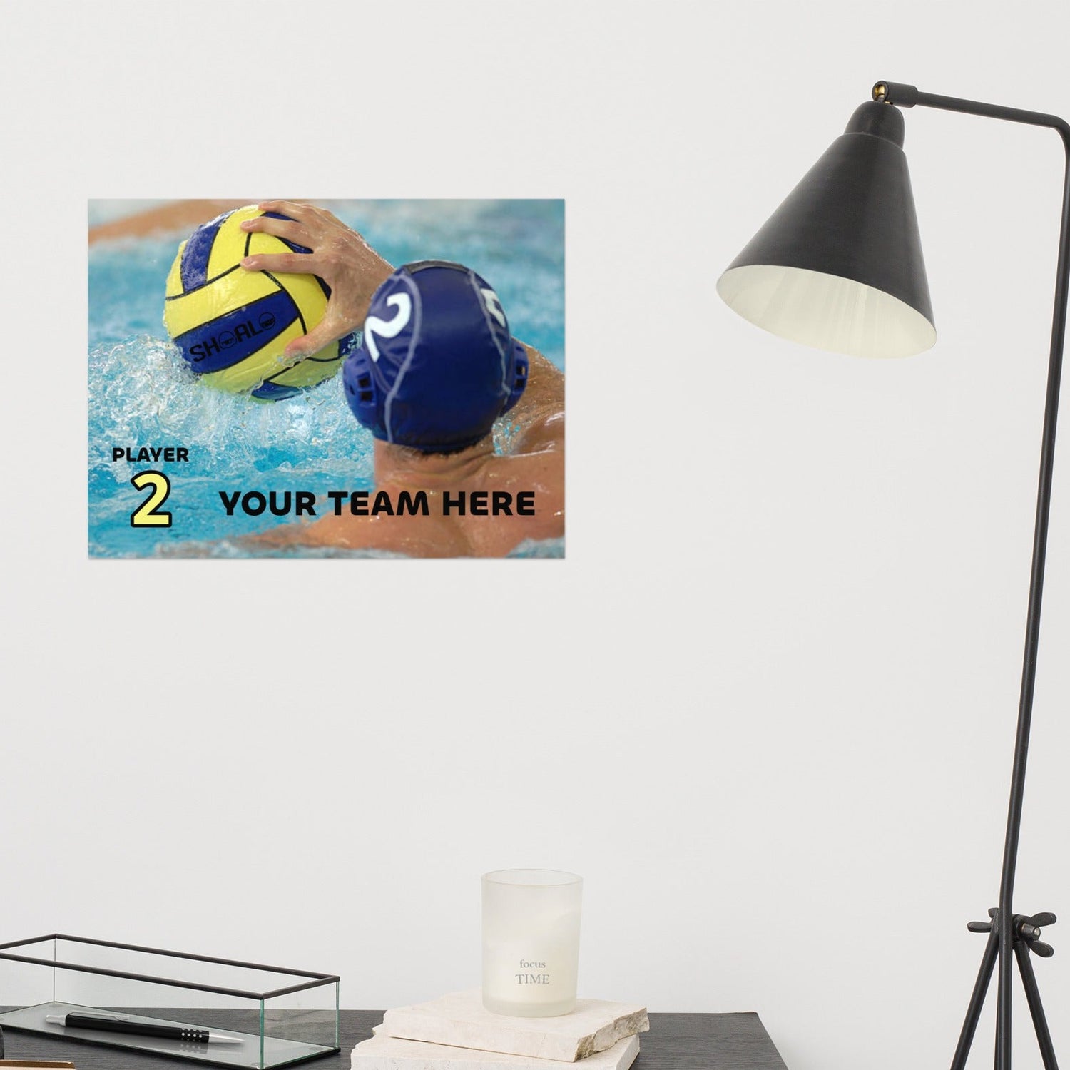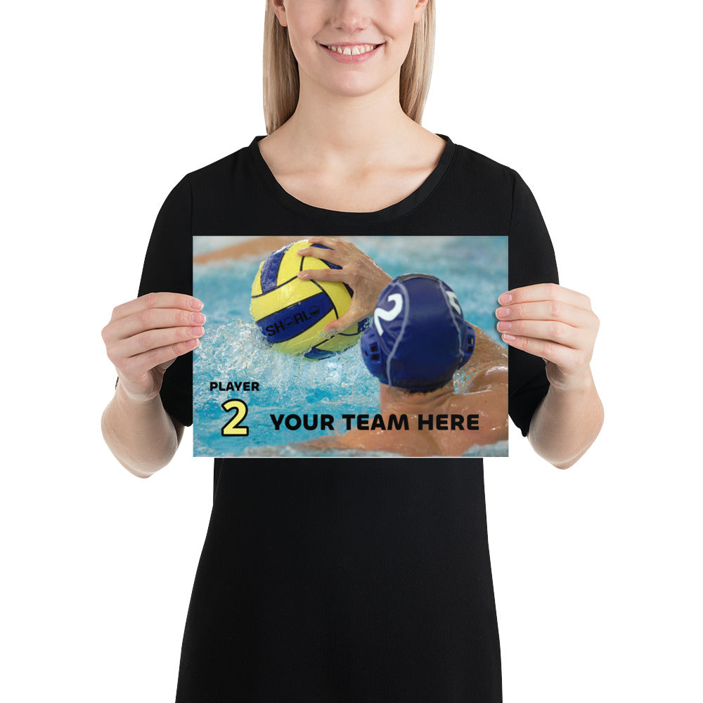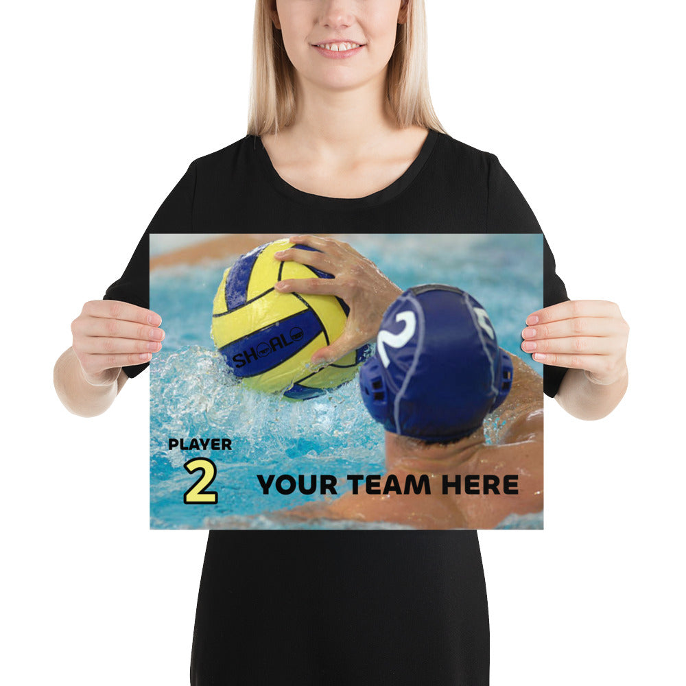Ensure your team receives the recognition it deserves with this poster crafted from durable matte paper and featuring a male water polo player / water polo ball.