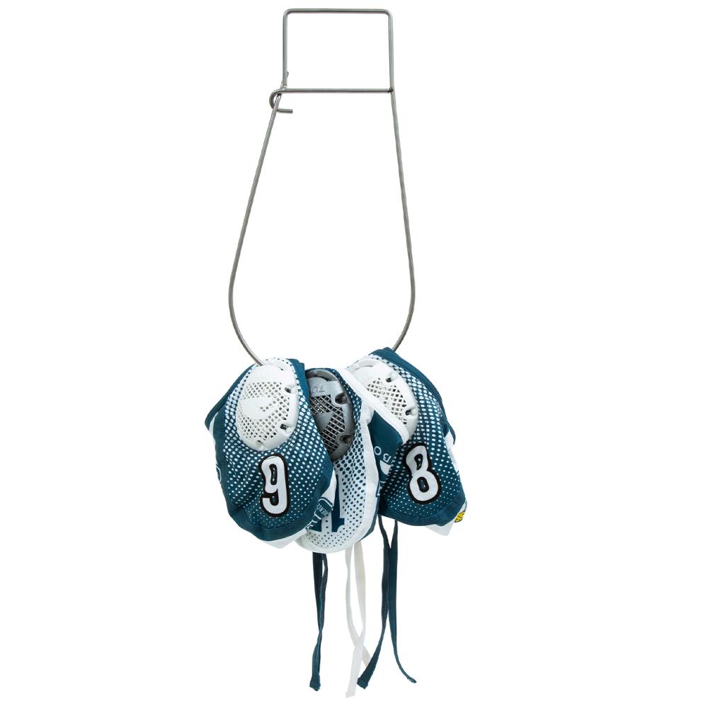 Metal stringer for easy storage of your teams water polo caps.